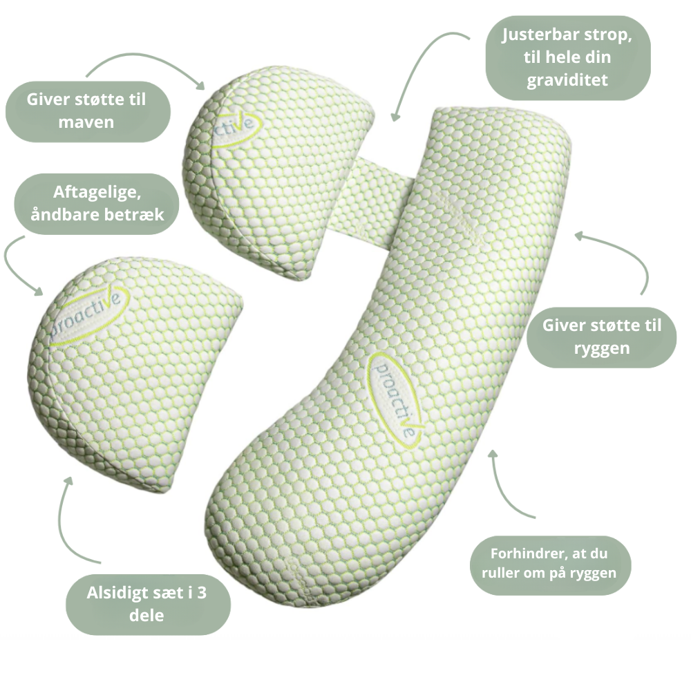 Fødselslæger verden over anbefaler at sove på siden under graviditeten som den sikreste stilling for dig og din baby, og det er præcis, hvad vores pude fremmer.