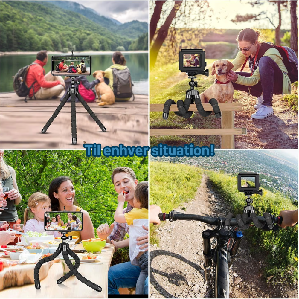 FlexiPod er en fleksibel mobiltripod, der kan stå frit, vikles rundt om genstande og justeres i enhver vinkel. Den giver dig fuld kontrol over dine optagelser – uden stativ, hjælp eller kompliceret opsætning.