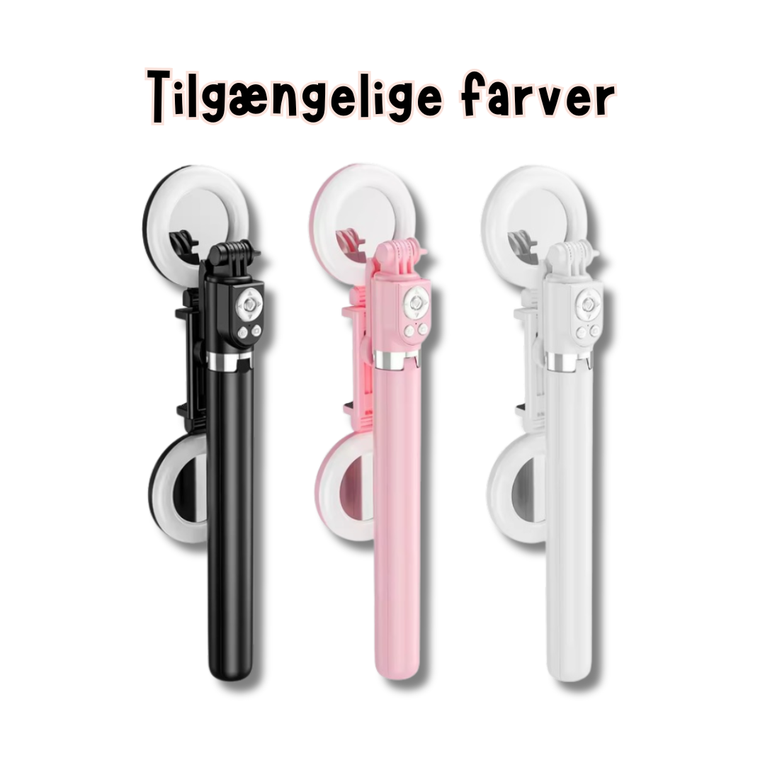 - Multifunktionalitet - Det 6-i-1 design tilbyder mere end blot en selfie-stick. Tag brede optagelser, stabiliser din telefon til videoer og find den perfekte belysning med de medfølgende lys.