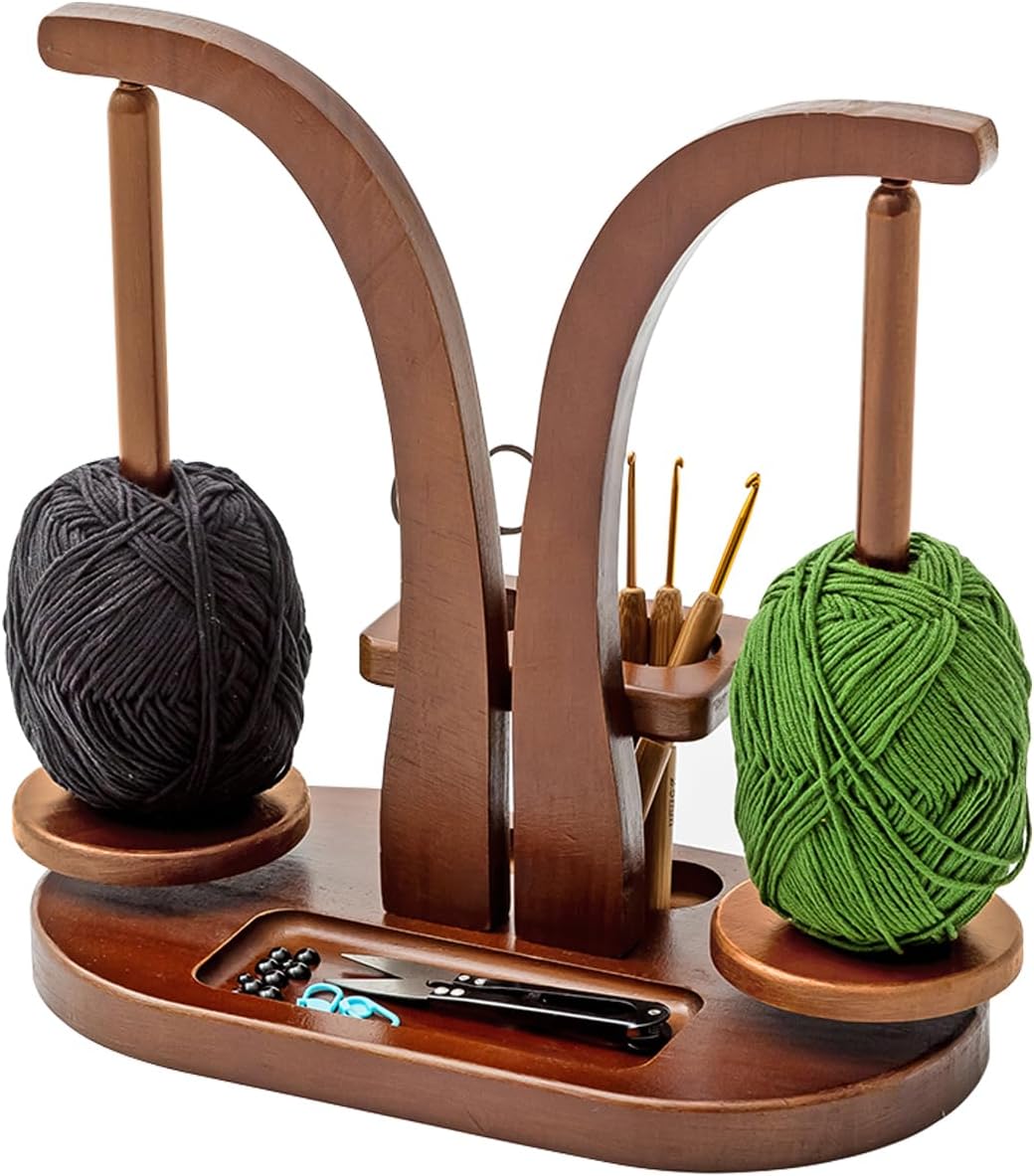 Magnetisk rejeholder, uldholder i træ med organisering til strikning, dobbelt rejeholderstativ til hækleelskere