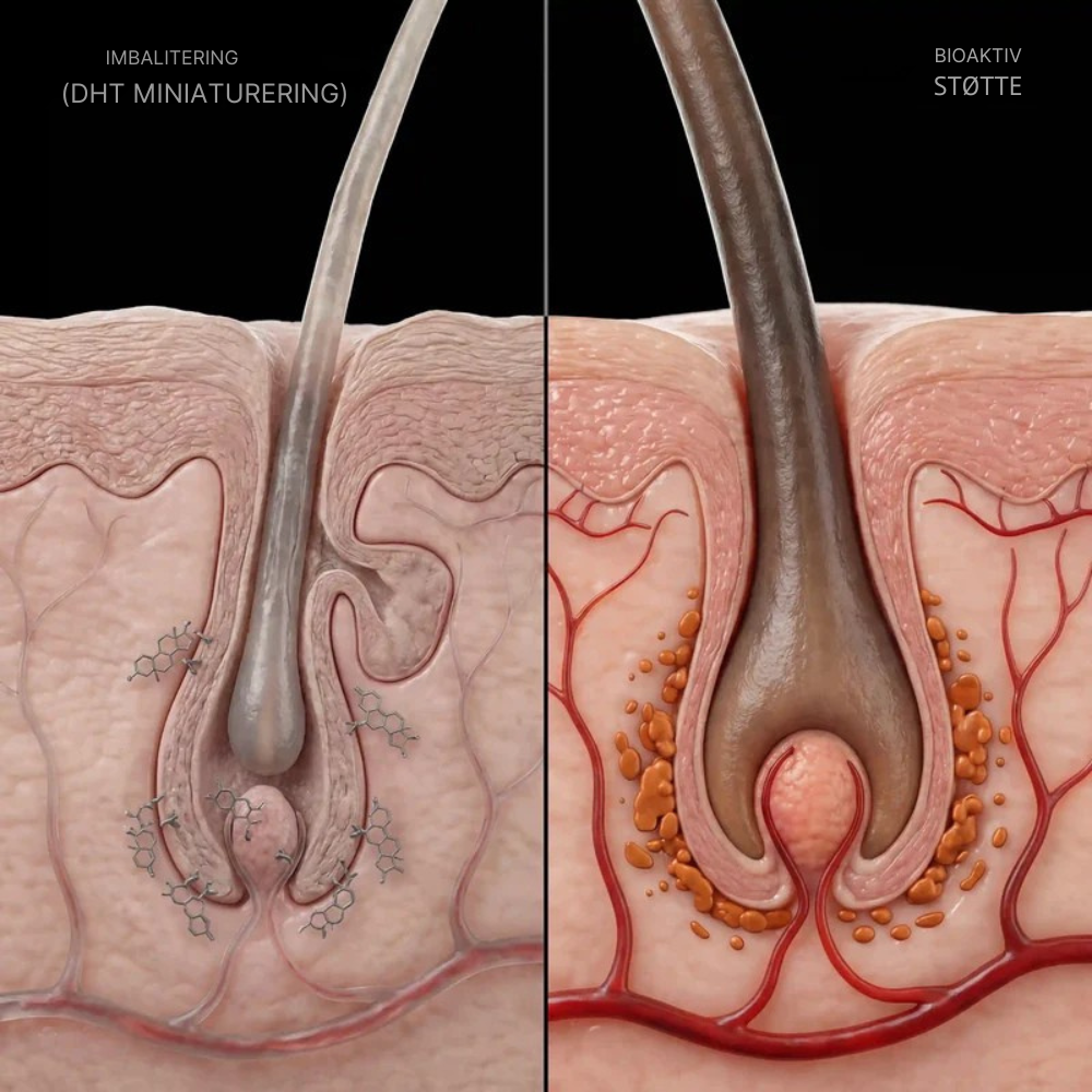 Hos mange mennesker spiller hormonet DHT en central rolle i hårtab, fordi det gradvist kan svække hårsækkene. Når hårsækkene bliver mindre aktive, begynder håret at vokse tyndere, svagere og falde hurtigere af. Mange forsøger eksterne løsninger som shampoo eller behandlinger, men hvis hårsækkene mangler støtte indefra, fortsætter problemet ofte.