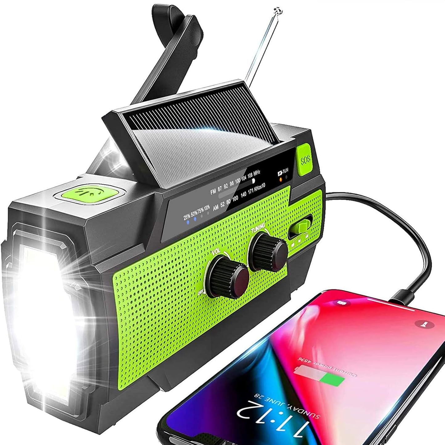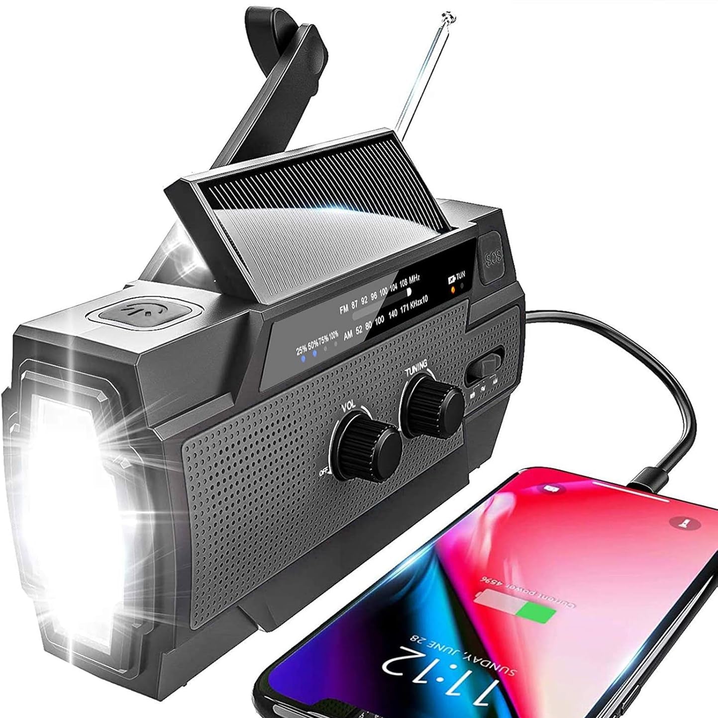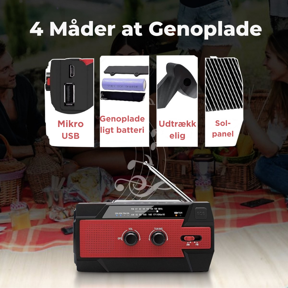 LifeLine Radio er mere end en radio. Den er designet som et alt-i-ét beredskabsværktøj, der giver adgang til radio, lys og strøm, selv når alt andet svigter. Med solopladning, manuel håndsving-opladning og et kraftigt 8000mAh powerbank-batteri kan du holde både radio og vigtige enheder kørende – uden elnet eller internet.