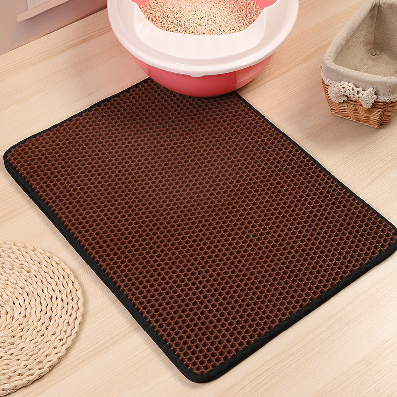LitterTrap er designet med et dobbeltlags-system, der opfanger grus fra kattens poter, når den forlader bakken. Gruset falder ned i måtten og bliver dér, i stedet for at sprede sig videre. En enkel løsning, der virker hver dag.