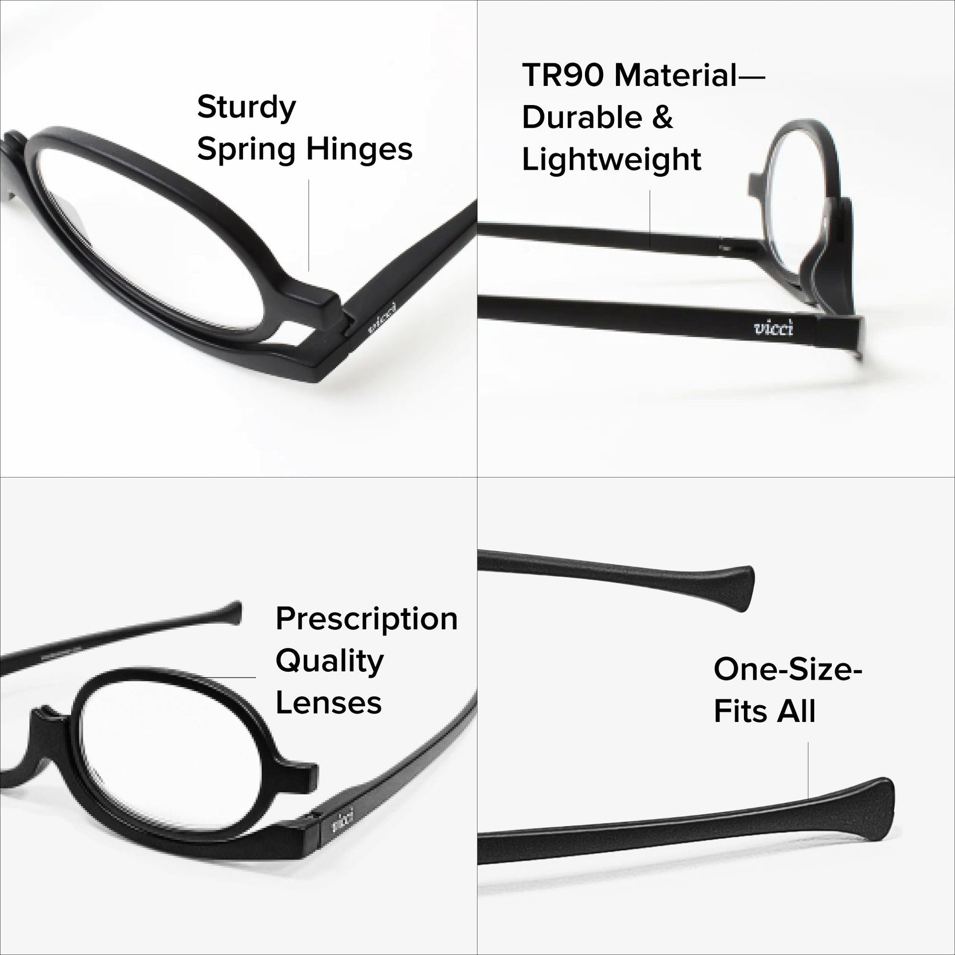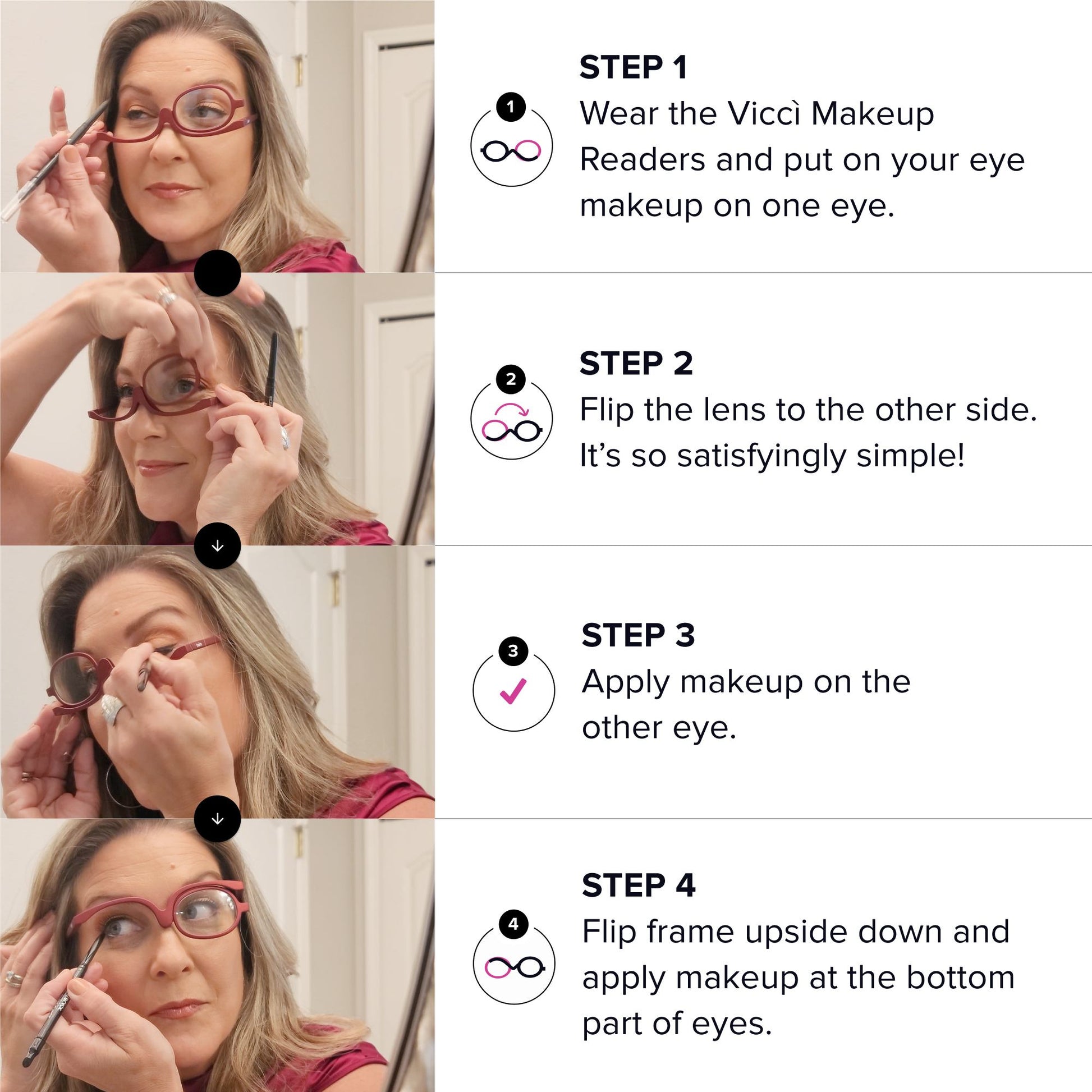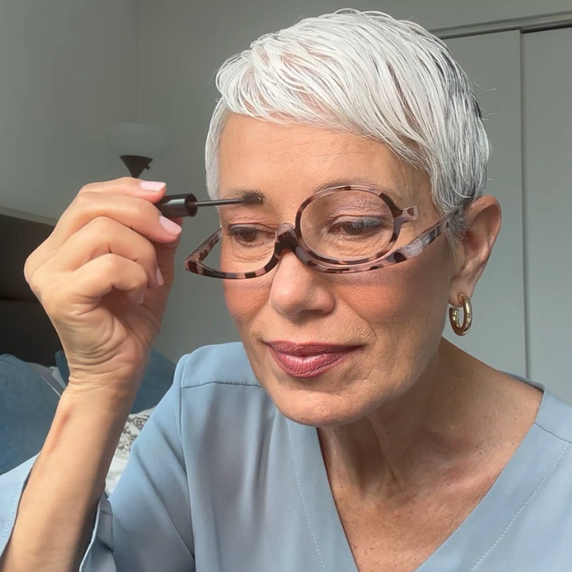 Har du brug for briller for at se klart, men har svært ved at lægge øjenmakeup? Med denne smarte anordning kan du gøre begge dele! Hold begge hænder fri, og arbejd uhindret på hvert øje ved at vende linsen til det modsatte øje. Undgå nemt pletter, udtværing og ujævn makeup.