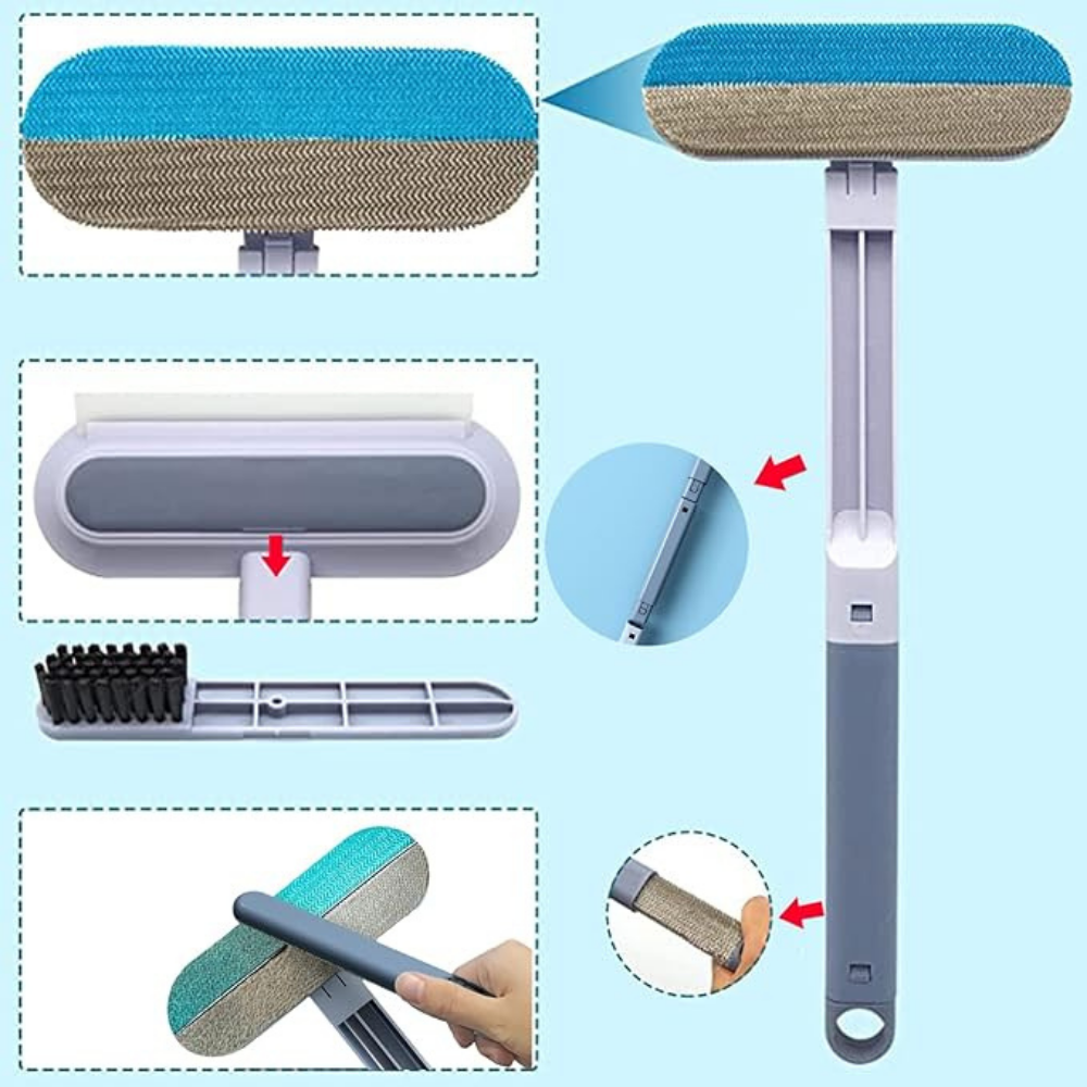 Den smarte dobbeltside gør det muligt at rense store flader hurtigt og nå små områder præcist. Du skal blot køre den hen over stoffet – alt hår og snavs sidder fast med det samme. Et let tryk, og alt føles nyt igen.