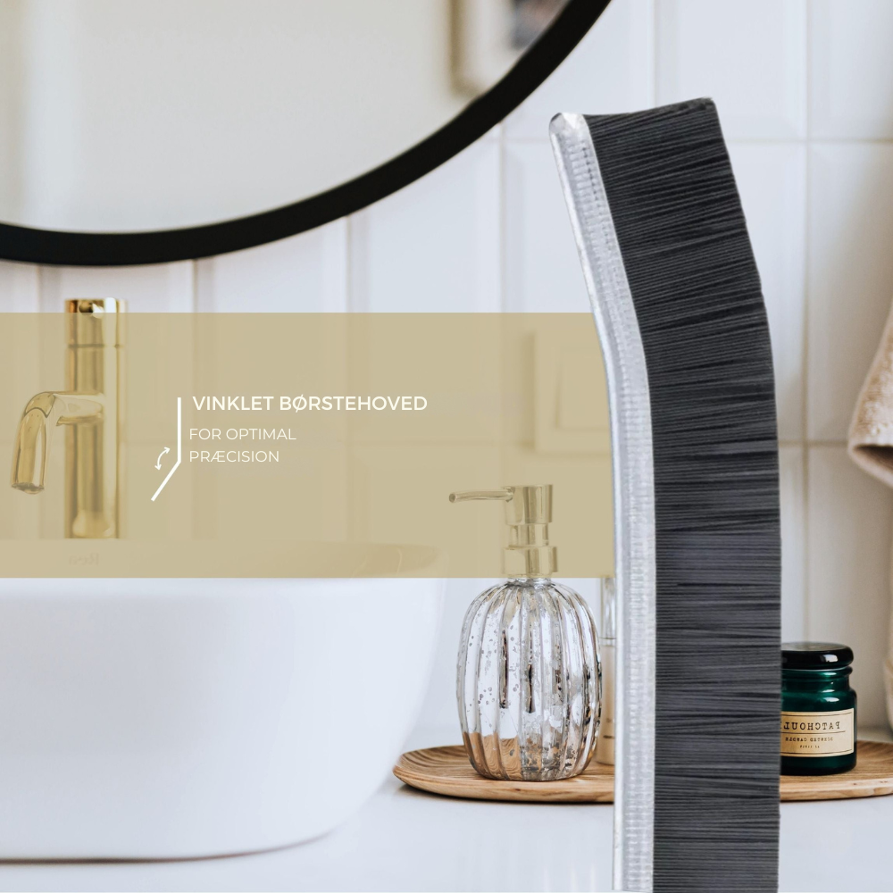Nå samlinger, trange steder og svært tilgængelige overflader med præcision. Effektiv, ergonomisk og skånsom mod alle overflader. Perfekt til badeværelset, køkkenet og andre uventede steder. Gør rent, hvor andre børster ikke kan komme til!