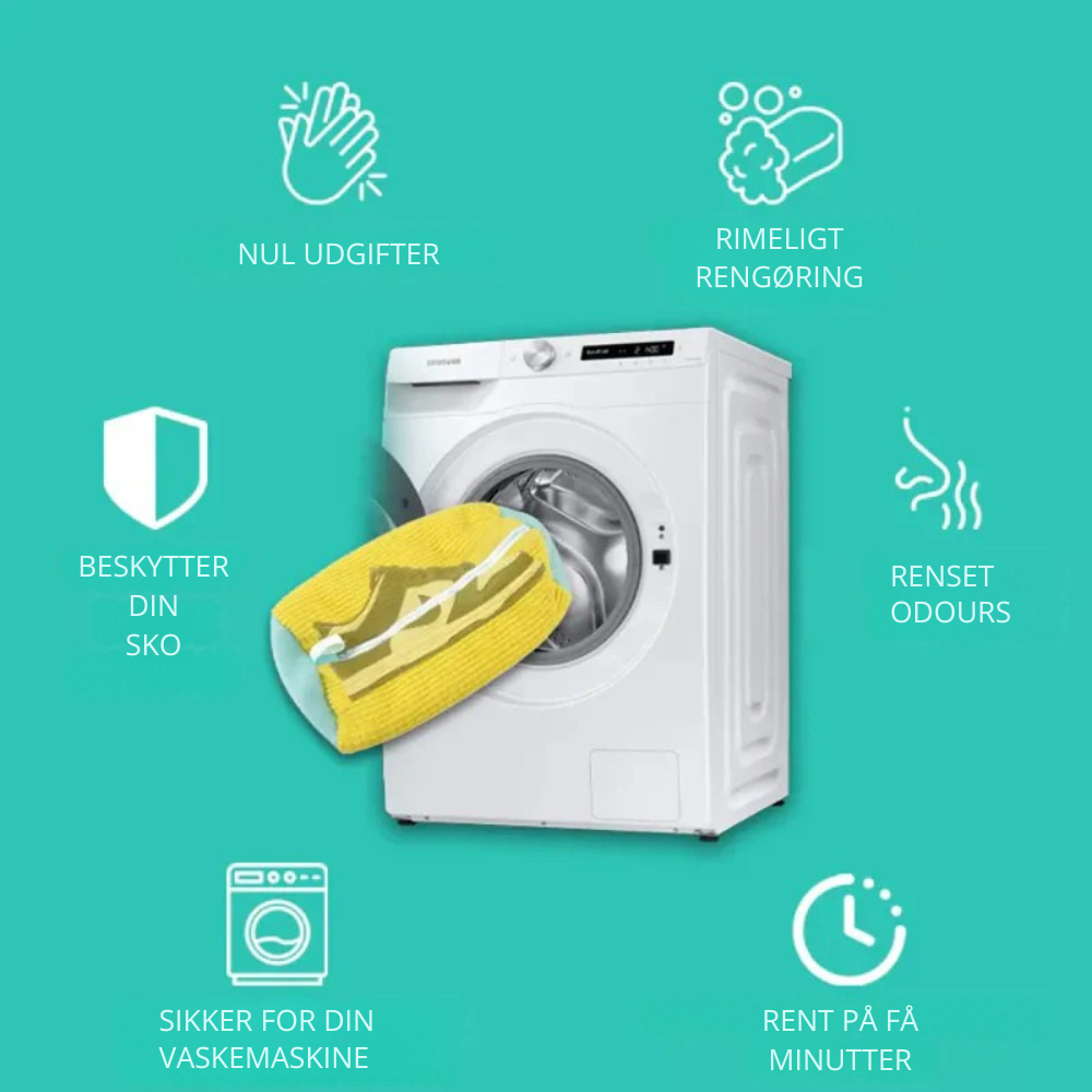 Shoebag™ gør det nemt og hurtigt at rengøre dine sko. Læg skoene i posen, tilsæt et mildt vaskemiddel, og lad vaskemaskinen klare resten.