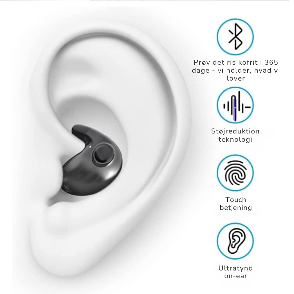 Den slanke form følger ørets kontur og ligger helt fladt, så du kan sove på siden uden tryk eller ubehag.