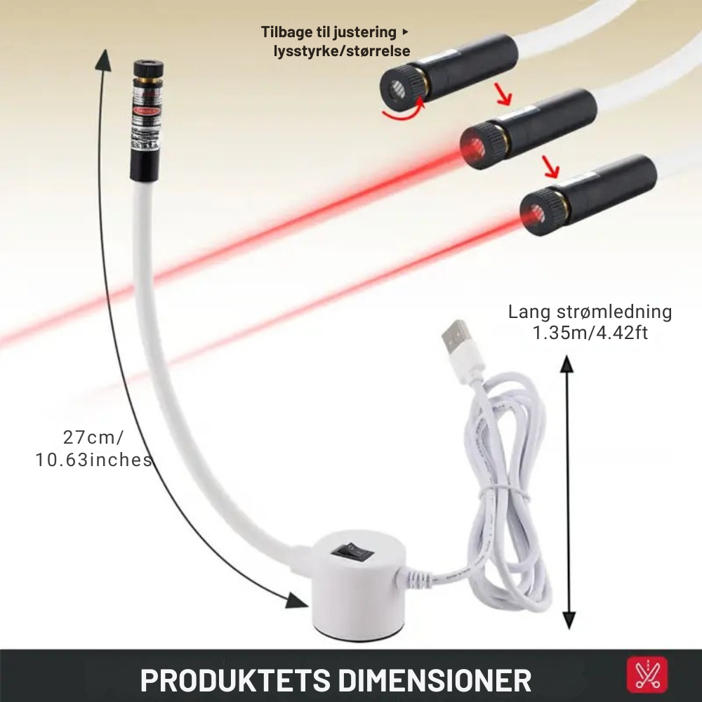 StitchLaser er et laserstyret syværktøj, der projicerer en klar, lige linje direkte på stoffet, så du altid ved, hvor du skal sy. Det giver bedre præcision, mere kontrol og en langt mere rolig syoplevelse, uden konstant opmåling eller justering.