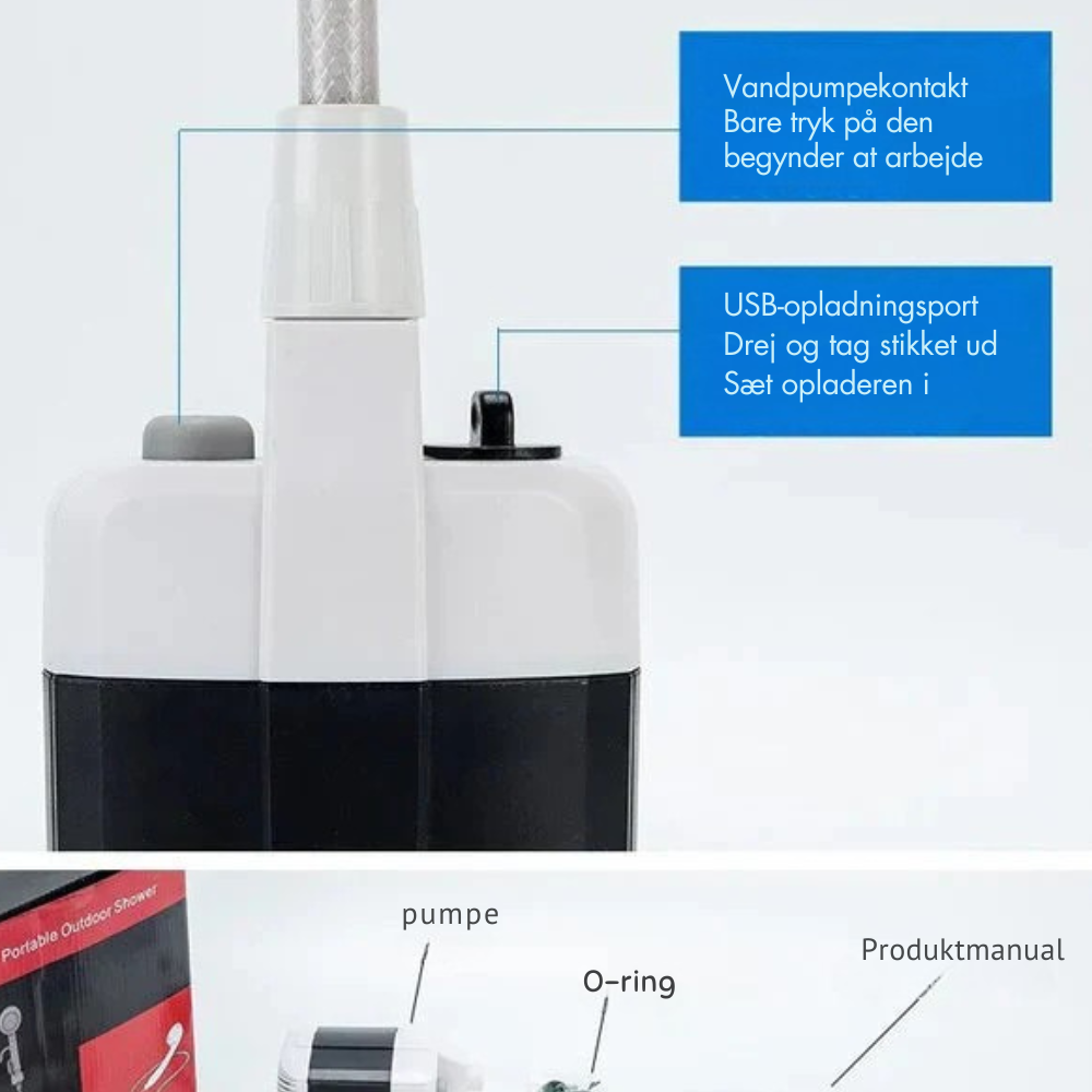 - Velegnet til camping, vandreture, rengøring af kæledyr, bilvask, vanding af planter osv.